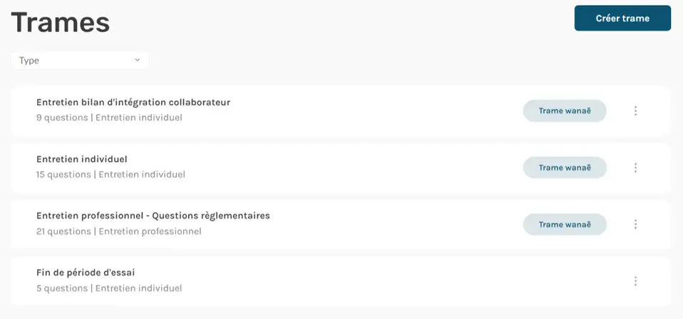 Bénéficiez de trames réalisées par nos experts pour créer des entretiens impactants.